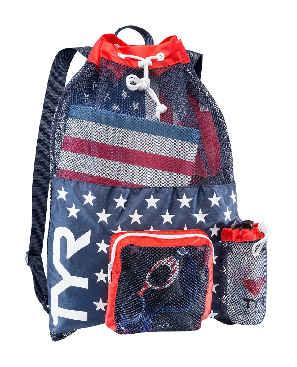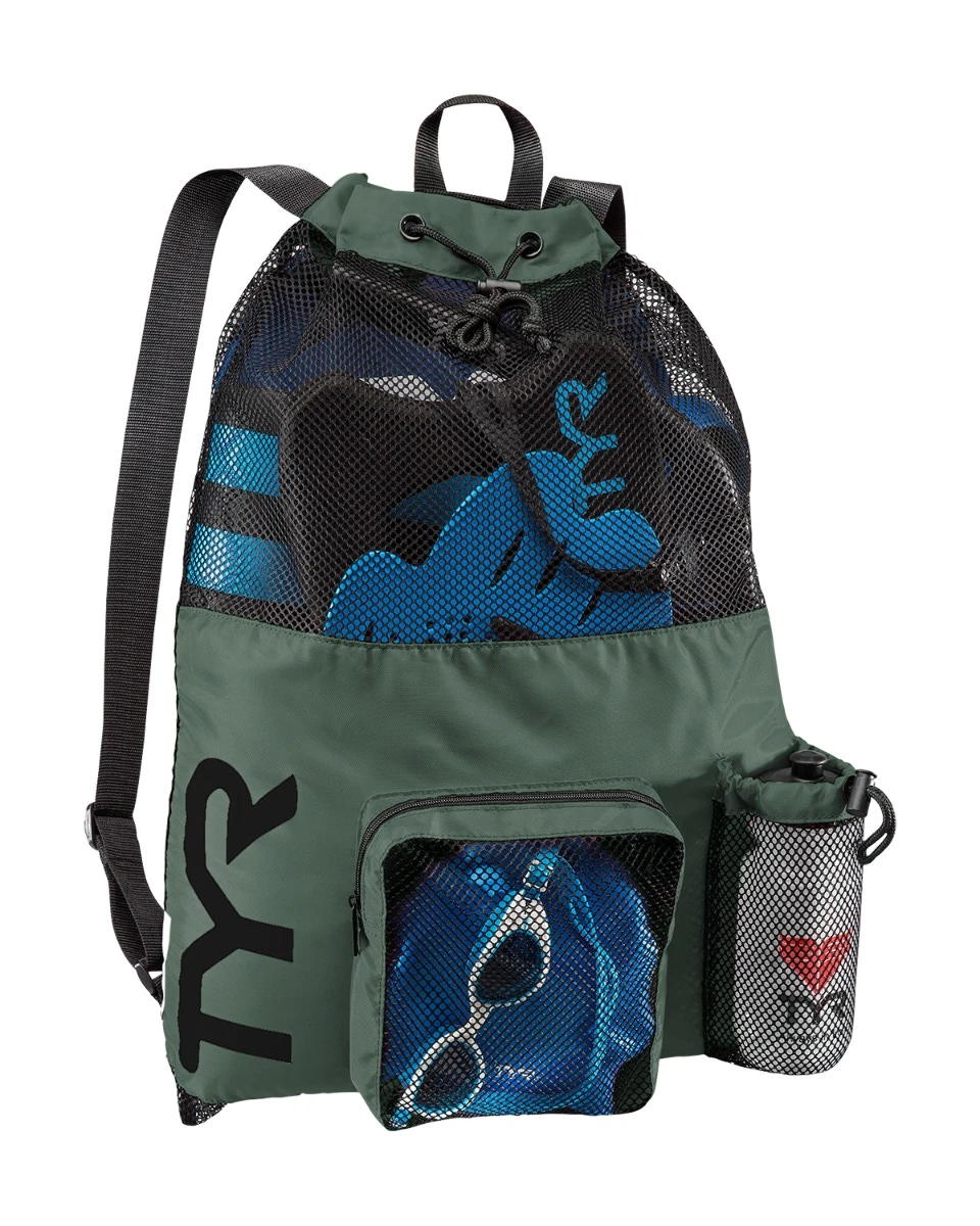 Updated with a 20% bigger design, the TYR Big Mesh Mummy Backpack is the perfect choice for hauling swim and workout gear. The LBMMB3 features a spacious main compartment for storage, small zip compartment and mesh venting for increased dry time and drainage. Over the shoulder straps allow for easy transport, while barrel-lock closures provide quick and easy access to your gear.