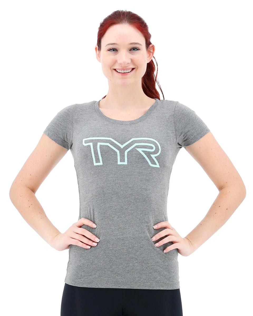 The TYR Women’s Big Outline Logo Tee takes you from the gym to the pavement seamlessly.